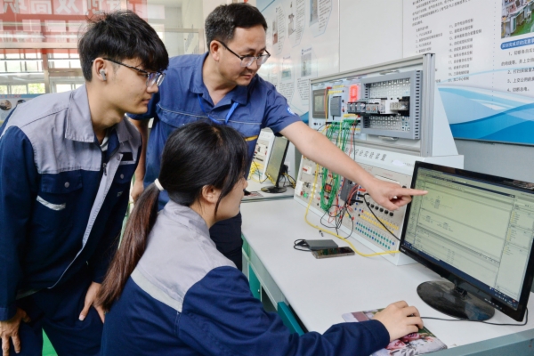 學生正在進行PLC編程技能比賽。