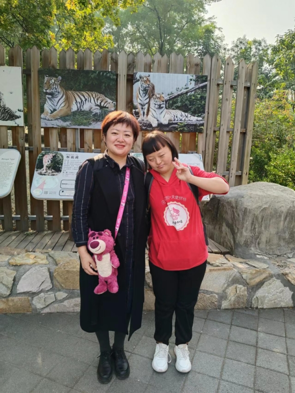 史瑾(左)帶孩子們?cè)诒本┝粲?。(圖片由海港區(qū)殘聯(lián)提供)