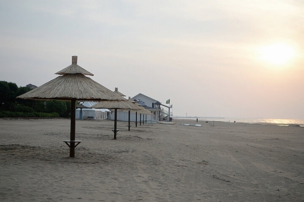 落日余暉下,靜謐的海岸線。唐山晚報 呂澤萱 攝