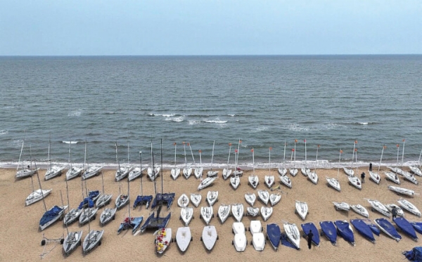 在遠(yuǎn)洋蔚藍(lán)海岸的帆船基地,帆船與大海構(gòu)成和諧的畫面。鄭州日報 馬健 攝