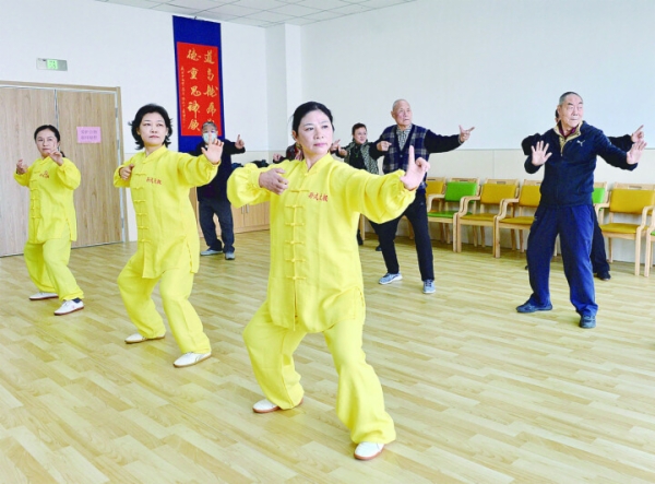河北平安秦康頤養(yǎng)中心組織老人健身。 記者 方竟凱 攝