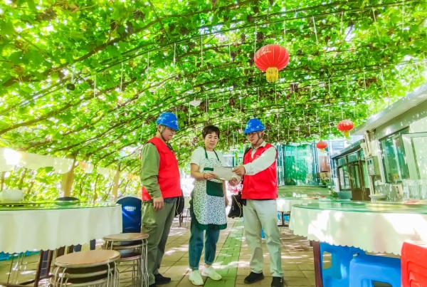 隨著中秋、國慶“雙節(jié)”的腳步日益臨近,洋溢著濃厚的節(jié)日氛圍,每個農(nóng)家院都為旅游高峰做好了各種準(zhǔn)備。為確保景區(qū)內(nèi)各家農(nóng)家院在節(jié)日期間用電無憂,國網(wǎng)秦皇島供電公司昌黎縣供電公司“五峰山黨員服務(wù)隊(duì)”提前深入葡萄溝景區(qū),開展安全用電活動,用實(shí)際行動守護(hù)游客與居民的節(jié)日用電安全。