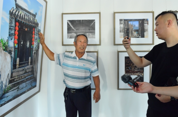 在古民居圖片展館,村民劉永池給游客介紹村子里的老照片。