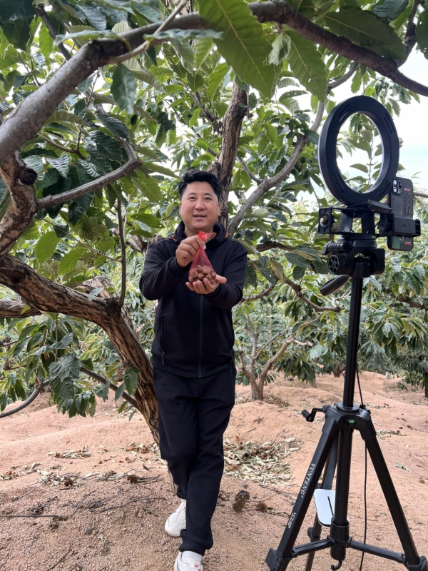 滿立峰在板栗樹(shù)下直播。(圖片由滿立峰提供)