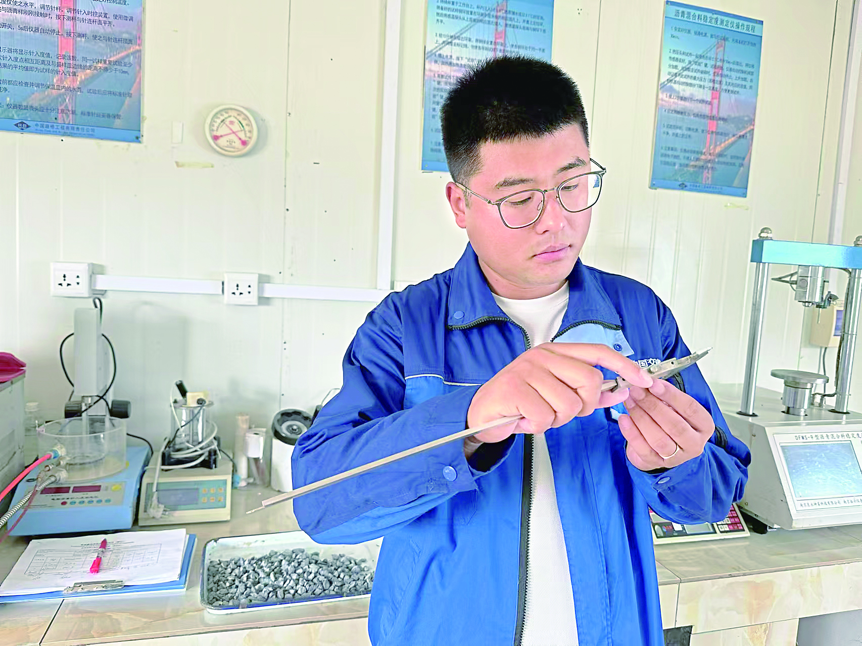 8年間,李碩先后參與多項(xiàng)重點(diǎn)工程,先后獲得柬埔寨金港高速公路頒發(fā)的“突出貢獻(xiàn)標(biāo)兵”、公司優(yōu)秀員工等榮譽(yù)。他也從一名試驗(yàn)員成長為試驗(yàn)室主任,被同事稱為專啃“硬骨頭”的李主任。