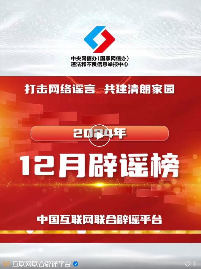 打擊網(wǎng)絡(luò)謠言 共建清朗家園 中國互聯(lián)網(wǎng)聯(lián)合辟謠平臺2024年12月辟謠榜