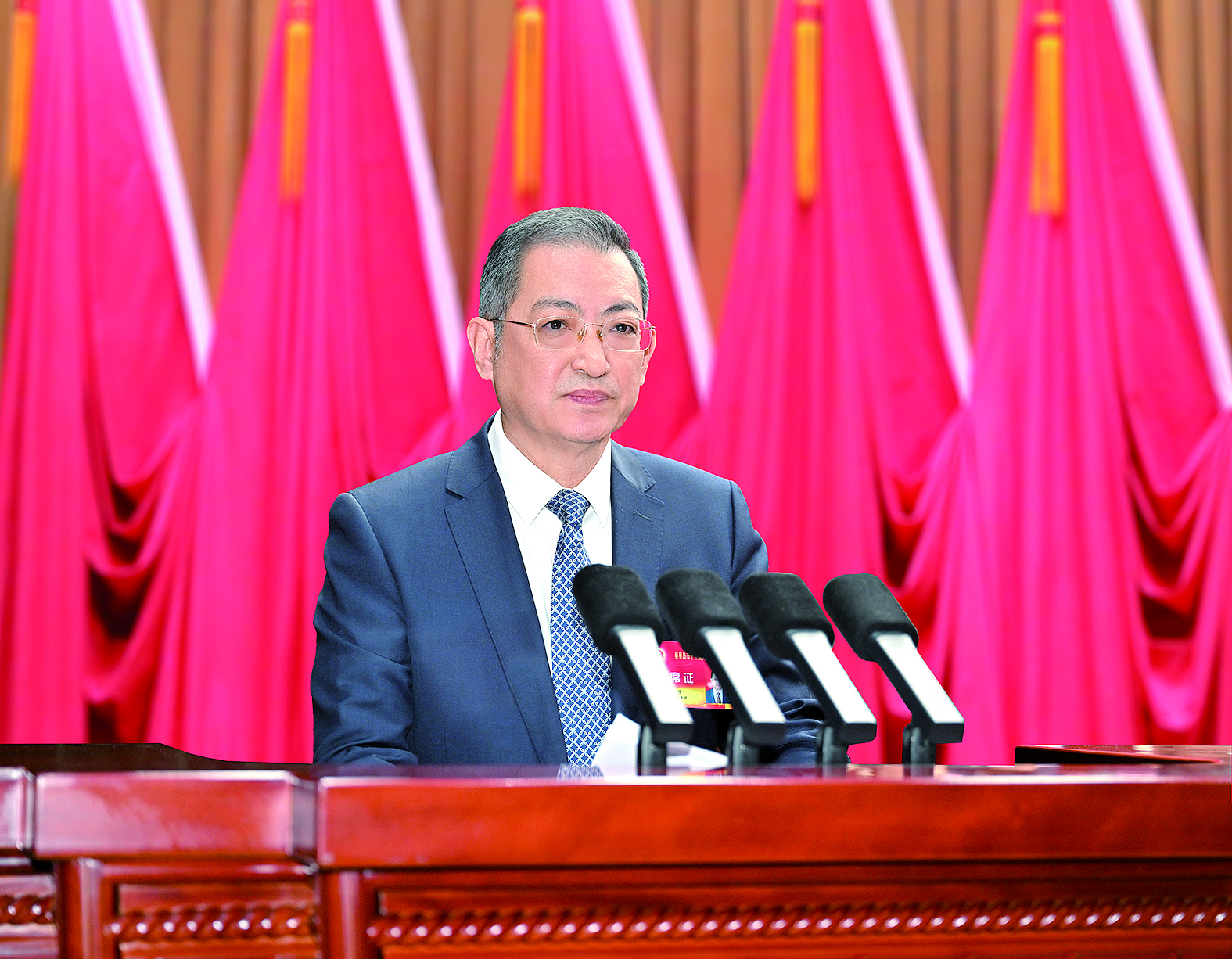 丁偉作政府工作報(bào)告。 記者 劉曉 攝