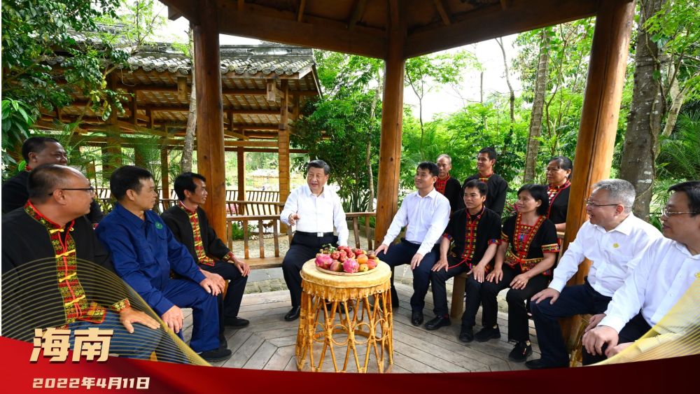 2022年4月11日,習(xí)近平在海南五指山市水滿鄉(xiāng)毛納村,同當(dāng)?shù)馗刹咳罕娪H切交談。在村寨涼亭內(nèi),習(xí)近平同駐村第一書記、鄉(xiāng)鎮(zhèn)鄉(xiāng)村振興工作隊(duì)隊(duì)長(zhǎng)、村支部書記、老黨員、致富帶頭人代表等親切交談。習(xí)近平強(qiáng)調(diào),推動(dòng)鄉(xiāng)村全面振興,關(guān)鍵靠人。要建設(shè)一支政治過(guò)硬、本領(lǐng)過(guò)硬、作風(fēng)過(guò)硬的鄉(xiāng)村振興干部隊(duì)伍,吸引包括致富帶頭人、返鄉(xiāng)創(chuàng)業(yè)大學(xué)生、退役軍人等在內(nèi)的各類人才在鄉(xiāng)村振興中建功立業(yè)。