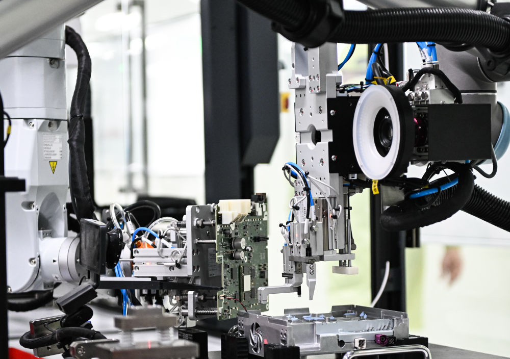 2024年2月27日,在江蘇無(wú)錫車聯(lián)天下信息技術(shù)有限公司,機(jī)器人在生產(chǎn)智能網(wǎng)聯(lián)汽車座艙域控制器。近年來(lái),無(wú)錫市全力提升產(chǎn)業(yè)創(chuàng)新能力和數(shù)字化綠色化發(fā)展水平,一批企業(yè)通過生產(chǎn)換線、人機(jī)協(xié)同、“上云用數(shù)賦智”等,打造智能工廠、智能車間,推動(dòng)企業(yè)降本、提質(zhì)、節(jié)能、增效,為制造業(yè)高質(zhì)量發(fā)展提供新動(dòng)能。