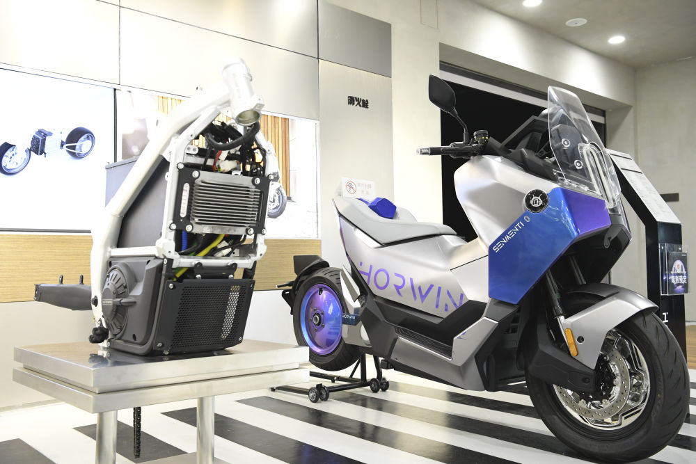 這是在江蘇常州浩萬(wàn)新能源科技有限公司展廳拍攝的一款電動(dòng)摩托車(2024年6月1日)。該公司初創(chuàng)于2016年,是一家主打海外市場(chǎng)的智能電動(dòng)摩托車生產(chǎn)商,產(chǎn)品銷往100多個(gè)國(guó)家和地區(qū),擁有200多項(xiàng)核心技術(shù)專利。近年來(lái),常州著力打造“新能源之都”,從政策、人才等方面提供支持,助力新能源民營(yíng)企業(yè)“走出去”。