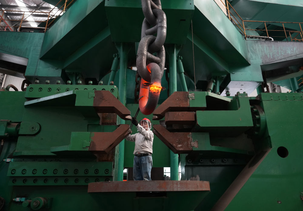 2024年6月4日,江蘇泰州靖江市江蘇亞星錨鏈股份有限公司工人在生產(chǎn)車間作業(yè)。該公司前身是40多年前創(chuàng)辦于靖江東興鎮(zhèn)的一個(gè)小廠,經(jīng)過多年發(fā)展,逐漸成長(zhǎng)為國(guó)家級(jí)制造業(yè)單項(xiàng)冠軍示范企業(yè)。目前該公司船用鏈條全國(guó)市占率達(dá)70%,全球市占率超50%,業(yè)務(wù)已拓展到海洋鉆井平臺(tái)、海洋生產(chǎn)平臺(tái)、海上風(fēng)電設(shè)施的系泊錨鏈等領(lǐng)域。