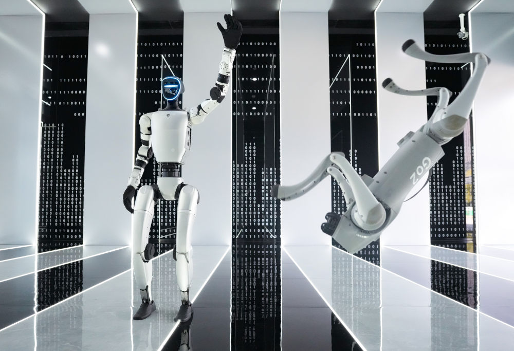 2025年3月1日,在杭州宇樹科技有限公司的產(chǎn)品展示中心,人形機(jī)器人和四足機(jī)器人在工作人員控制下做動(dòng)作。人形機(jī)器人是人工智能技術(shù)的集成體現(xiàn),在這個(gè)未來(lái)產(chǎn)業(yè)的重要賽道上,一大批中國(guó)企業(yè)深耕技術(shù)、持續(xù)創(chuàng)新,國(guó)產(chǎn)機(jī)器人正在跑出“加速度”。