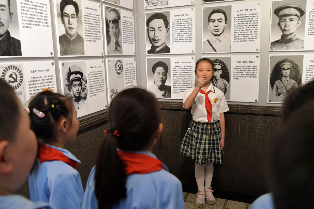 2021年5月12日,在井岡山革命烈士陵園,“小紅軍宣講團(tuán)”的成員周煜菡給前來(lái)參觀研學(xué)的學(xué)生們進(jìn)行義務(wù)講解。井岡山小學(xué)把“紅色德育”作為立德樹(shù)人的重要抓手,成立了“小紅軍宣講團(tuán)”,培養(yǎng)了一批講好紅色故事、傳承先輩精神的小小義務(wù)講解員。