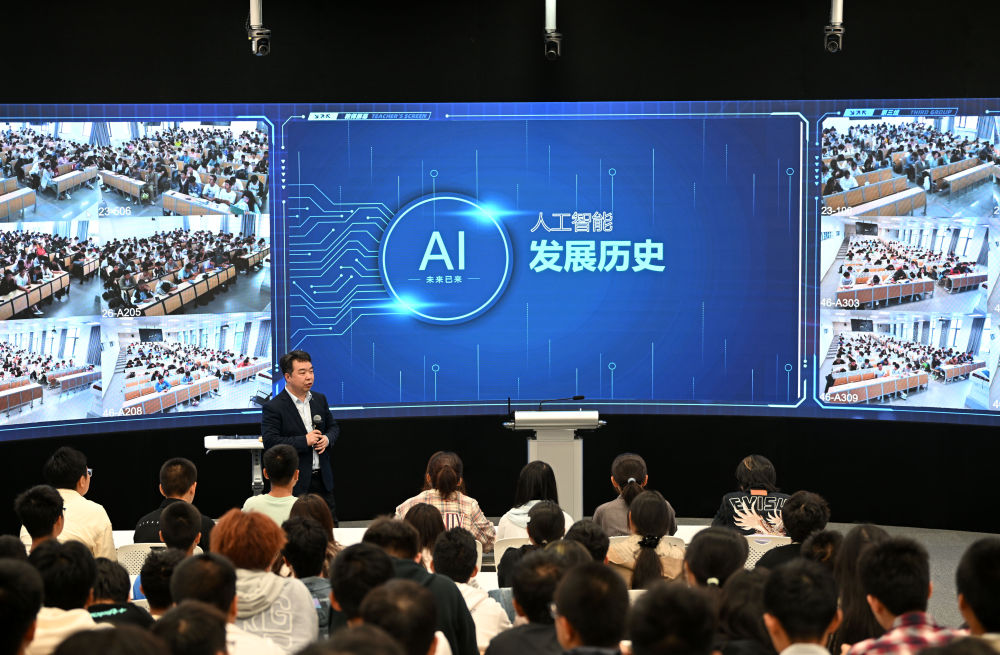2024年9月20日,天津大學(xué)人工智能學(xué)院胡清華教授在授課。天津大學(xué)在2024年秋季學(xué)期推出《人工智能導(dǎo)論》課程,由8位人工智能及交叉學(xué)科領(lǐng)域的教授共同打造,同時(shí)配備30名來(lái)自智算學(xué)部、精儀學(xué)院、自動(dòng)化學(xué)院、理學(xué)院等13個(gè)學(xué)院的專(zhuān)業(yè)教師,面向全體本科生進(jìn)行授課。