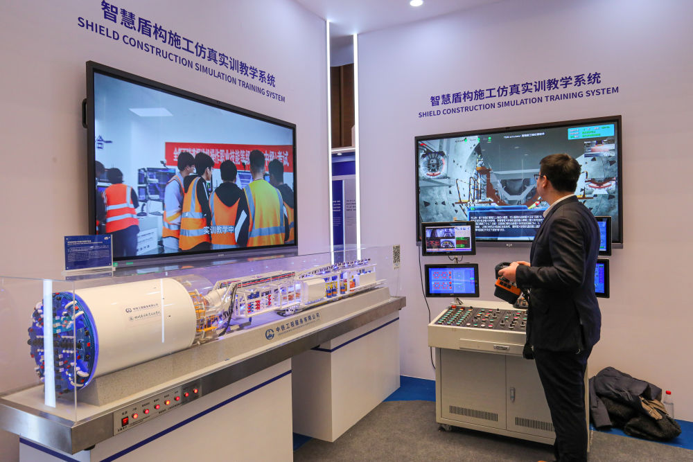 2024年1月30日,工作人員在上海舉辦的“數(shù)智未來(lái)”教育展上演示智慧盾構(gòu)施工仿真實(shí)訓(xùn)教學(xué)系統(tǒng)。2024世界數(shù)字教育大會(huì)以“數(shù)字教育:應(yīng)用、共享、創(chuàng)新”為主題,圍繞教師數(shù)字素養(yǎng)與勝任力提升、數(shù)字化與學(xué)習(xí)型社會(huì)建設(shè)、數(shù)字教育評(píng)價(jià)、人工智能與數(shù)字倫理、數(shù)字變革對(duì)基礎(chǔ)教育的挑戰(zhàn)與機(jī)遇、教育治理數(shù)字化與數(shù)字教育治理等議題展開(kāi)討論。