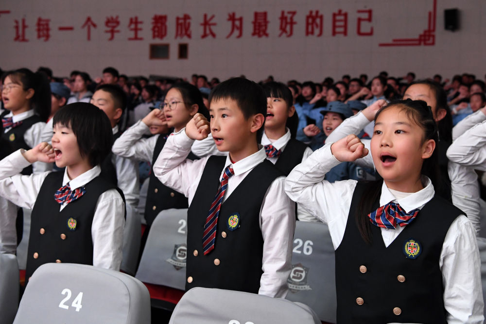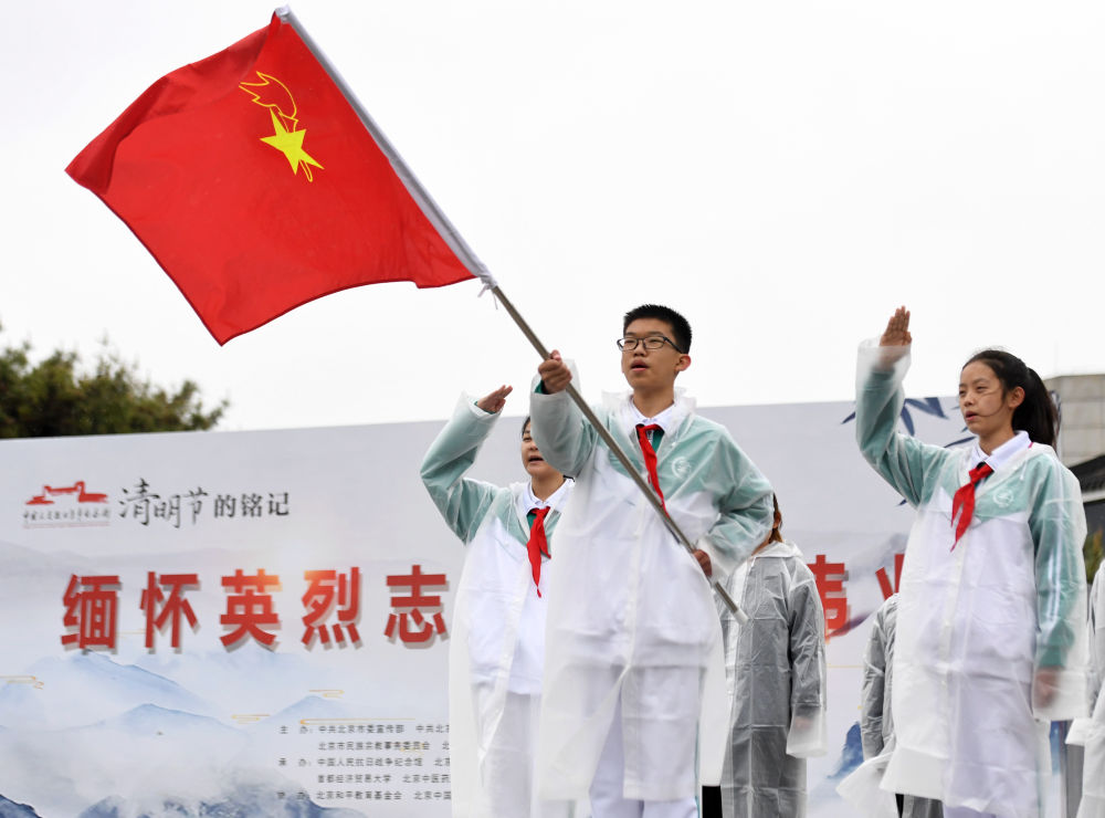 2023年4月4日,“清明節(jié)的銘記——緬懷英烈志 創(chuàng)造新偉業(yè)”主題教育系列活動(dòng)啟動(dòng)儀式在中國(guó)人民抗日戰(zhàn)爭(zhēng)紀(jì)念館舉行。這是少先隊(duì)員代表在啟動(dòng)儀式上高唱《我們是共產(chǎn)主義接班人》。