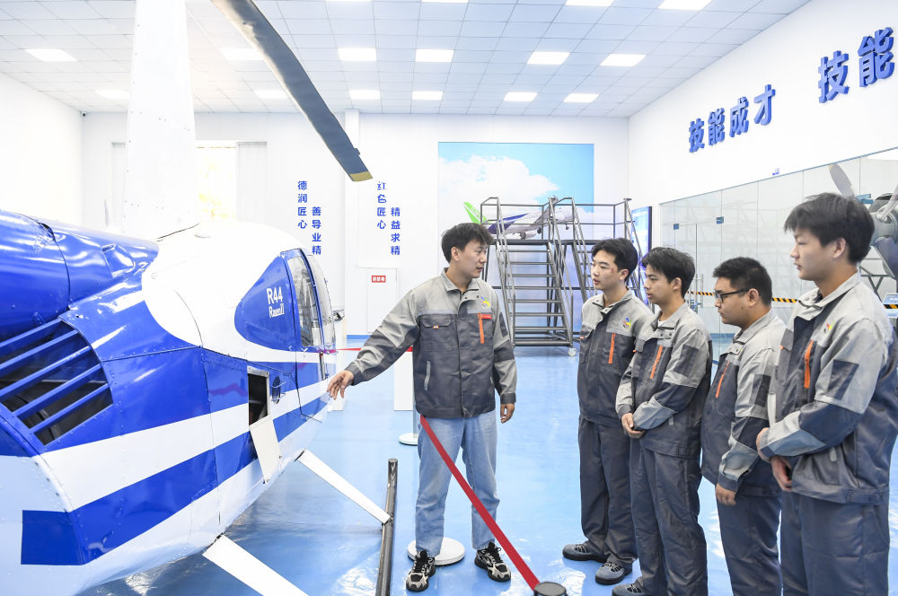 2024年9月25日,重慶城市職業(yè)學(xué)院航空學(xué)院教師(左一)在為學(xué)生們講解直升機(jī)繞機(jī)檢查的注意事項(xiàng)。近年來(lái),重慶市永川區(qū)依托現(xiàn)代制造業(yè)基地和西部職教基地優(yōu)勢(shì),推動(dòng)低空產(chǎn)業(yè)領(lǐng)域的校企合作、產(chǎn)教融合,布局發(fā)展低空制造、低空管理、低空應(yīng)用等低空經(jīng)濟(jì)產(chǎn)業(yè),助推經(jīng)濟(jì)高質(zhì)量發(fā)展。