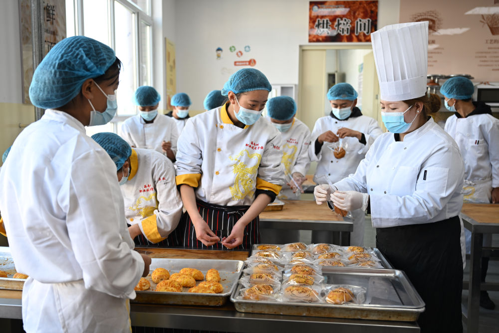 2024年12月17日,青海省海南藏族自治州職業(yè)技術(shù)學(xué)校烹飪專(zhuān)業(yè)教師黃雪妍(前右)在指導(dǎo)學(xué)生學(xué)習(xí)西點(diǎn)烘焙。近年來(lái),青海省海南藏族自治州加大職業(yè)技術(shù)人才培養(yǎng)力度,開(kāi)設(shè)藏醫(yī)藥、汽車(chē)維修、烹飪等專(zhuān)業(yè),通過(guò)推進(jìn)學(xué)校與企業(yè)聯(lián)合辦學(xué),創(chuàng)新校企合作、定向培養(yǎng)等辦學(xué)模式,拓寬職業(yè)教育畢業(yè)生就業(yè)渠道。