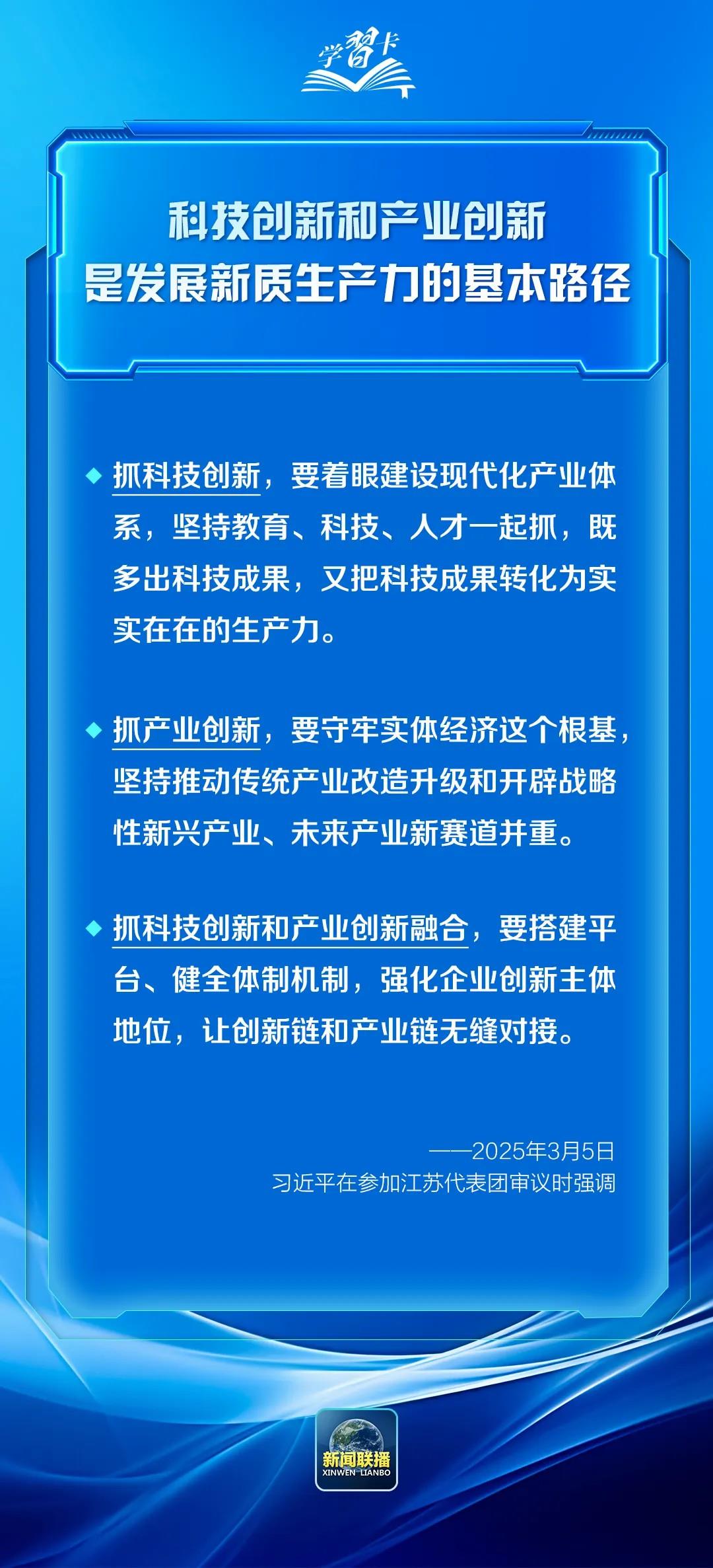 2025年全國兩會期間,習(xí)近平總書記參加團(tuán)組審議討論時(shí),多次提到科技創(chuàng)新這一關(guān)鍵命題,強(qiáng)調(diào)“科技創(chuàng)新和產(chǎn)業(yè)創(chuàng)新,是發(fā)展新質(zhì)生產(chǎn)力的基本路徑”。一起學(xué)習(xí)↓