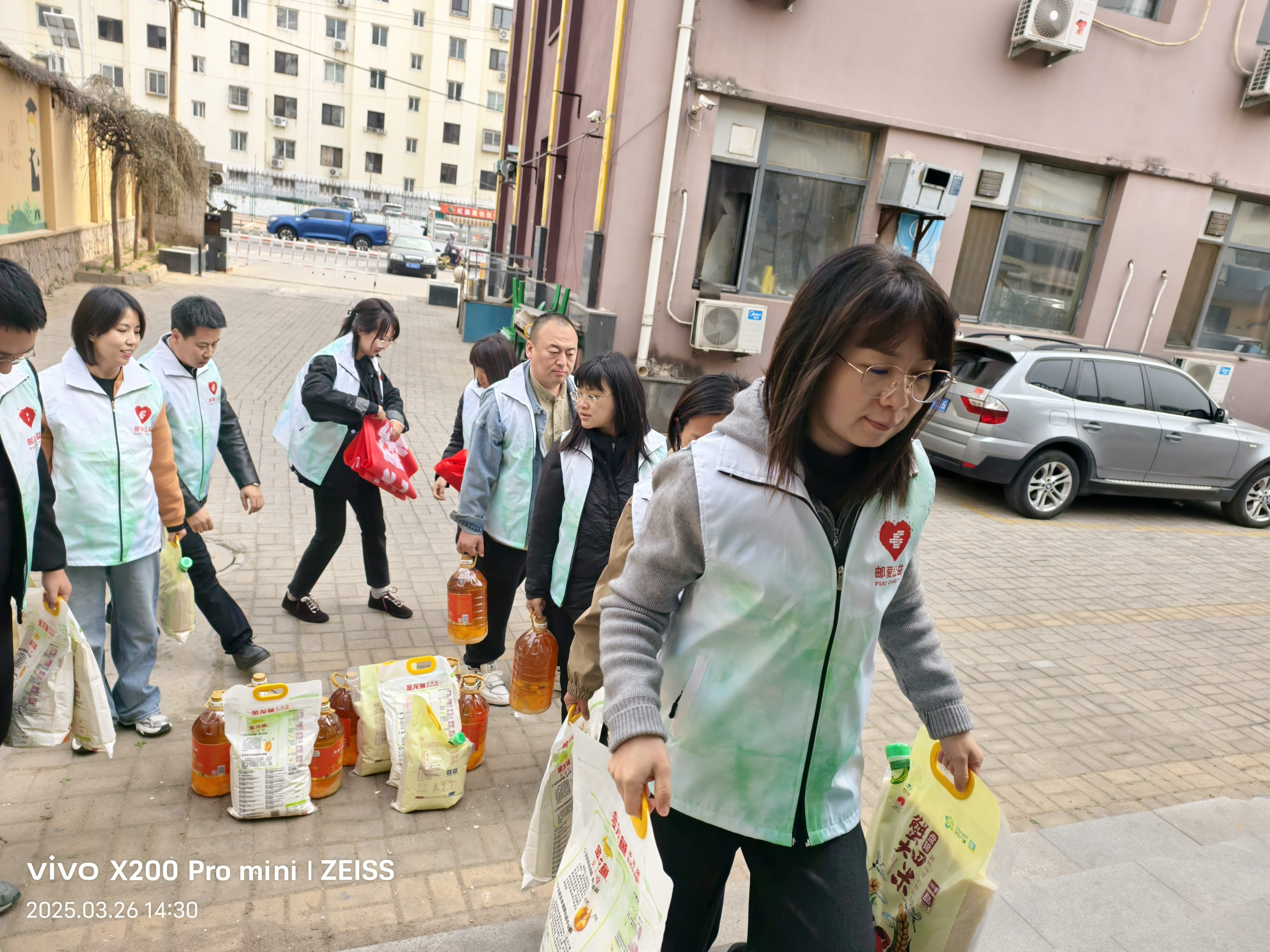 活動(dòng)當(dāng)日,志愿者們?cè)缭缂铣霭l(fā),齊心協(xié)力將大米、食用油、面粉等生活物資搬運(yùn)至活動(dòng)現(xiàn)場(chǎng)。