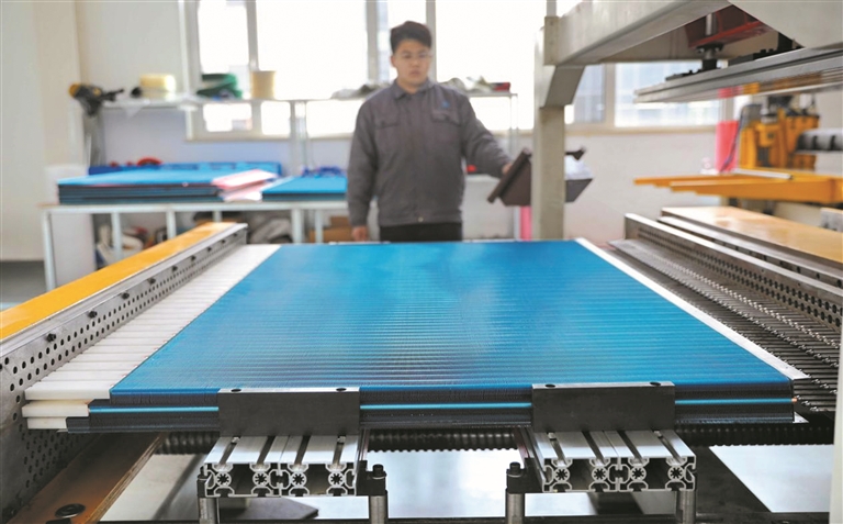 走進(jìn)秦皇島金昱智能裝備有限公司,生產(chǎn)線上一派繁忙。剛剛下線的層壓機(jī)設(shè)備,經(jīng)過檢查、打包,即將發(fā)往國外,應(yīng)用于光伏電池組件生產(chǎn)。目前,公司年產(chǎn)層壓機(jī)設(shè)備達(dá)到800臺(tái),服務(wù)于全球210多家新能源企業(yè)。搶占市場的法寶,源于公司在生產(chǎn)技術(shù)上的不斷創(chuàng)新。