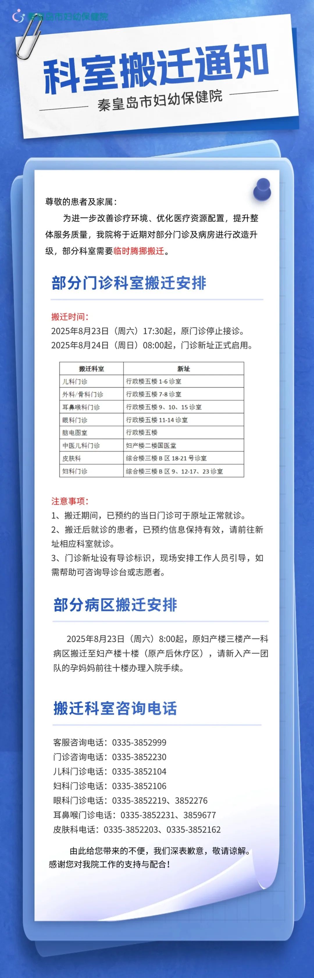 秦皇島市婦幼保健院優(yōu)化醫(yī)療資源配置 部分科室臨時(shí)搬遷