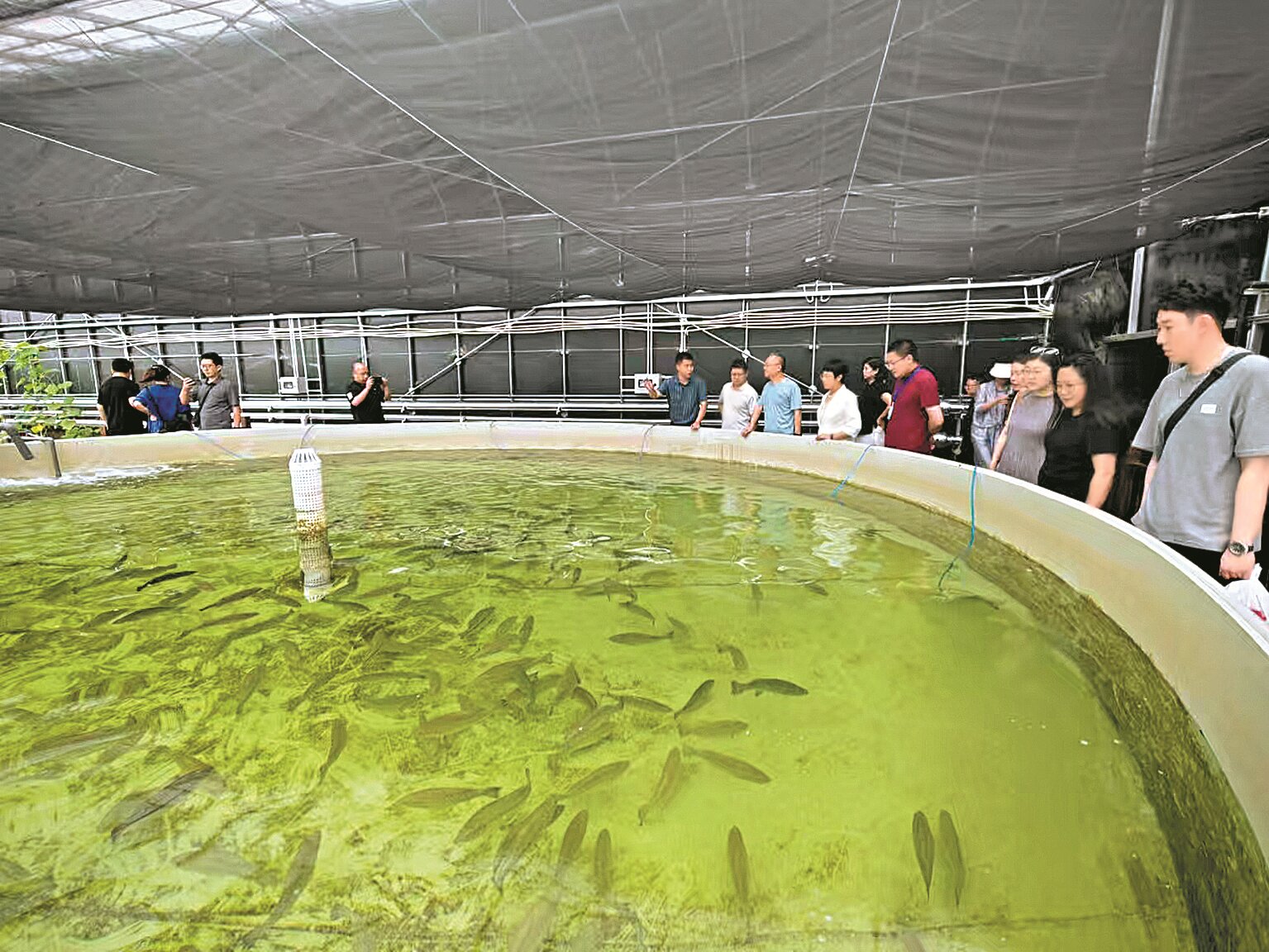 北戴河村日光溫室中的魚菜共生系統(tǒng)實(shí)現(xiàn)“養(yǎng)魚不換水、種菜不施肥”。記者 李正男 攝
