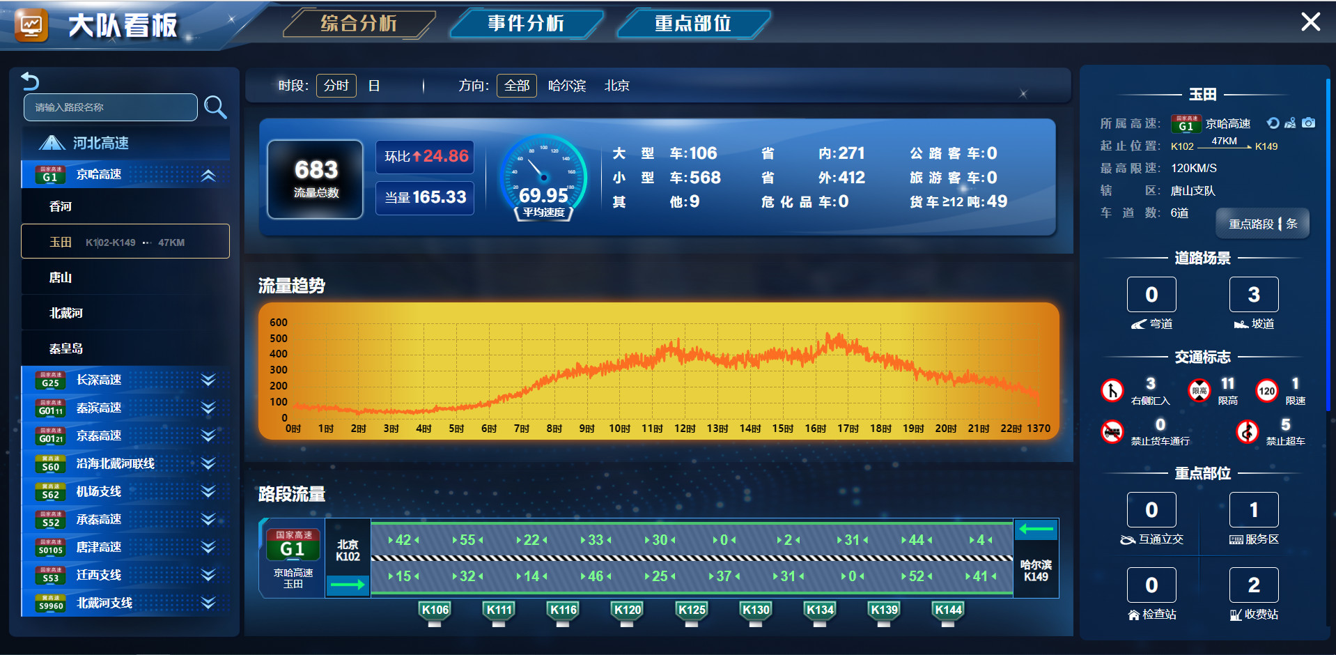 為保障廣大群眾有序安全通行高速公路,河北省公安廳交管局依托綜合智能交管體系,發(fā)揮“專業(yè)+機(jī)制+大數(shù)據(jù)”的優(yōu)勢,以信息主導(dǎo)警務(wù)實(shí)戰(zhàn),將路網(wǎng)流量、道路擁堵、交通事故、惡劣天氣、重點(diǎn)違法等影響道路安全的各類警情信息全面掌握,用“科技指數(shù)”守護(hù)群眾“平安指數(shù)”。