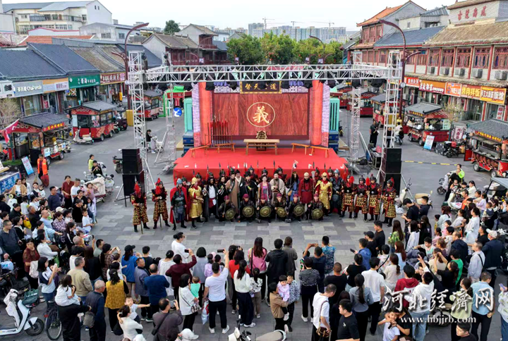 9月30日到10月8日,“智取大名府”行進式演藝將每天在大名集薈夜市至古城南街路段上演。演員身著古裝,再現(xiàn)《水滸傳》中描寫的梁山好漢營救盧俊義的經(jīng)典場景。游客可跟隨劇情互動,領(lǐng)取“通關(guān)文牒”,集章兌換禮品。