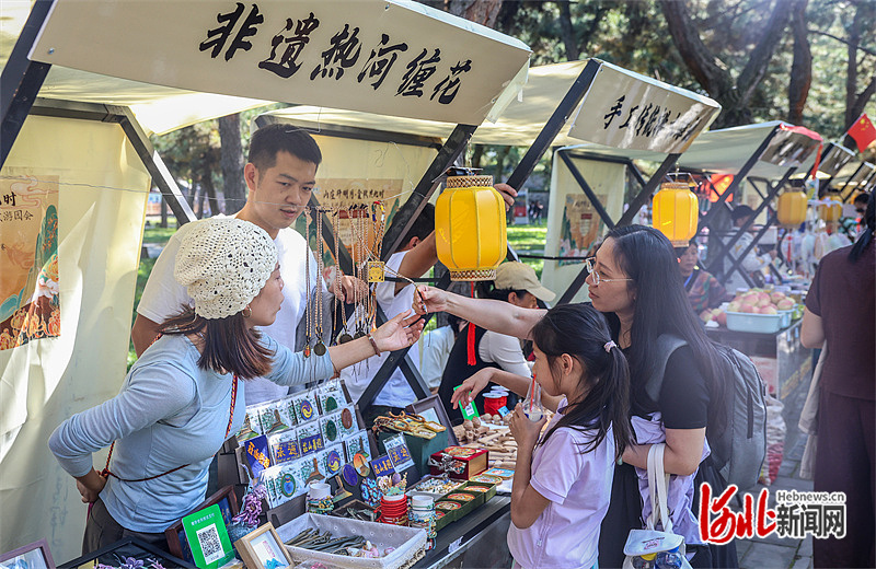 10月3日,游客在承德避暑山莊文化市集購買商品。河北日報記者 李佳澤攝