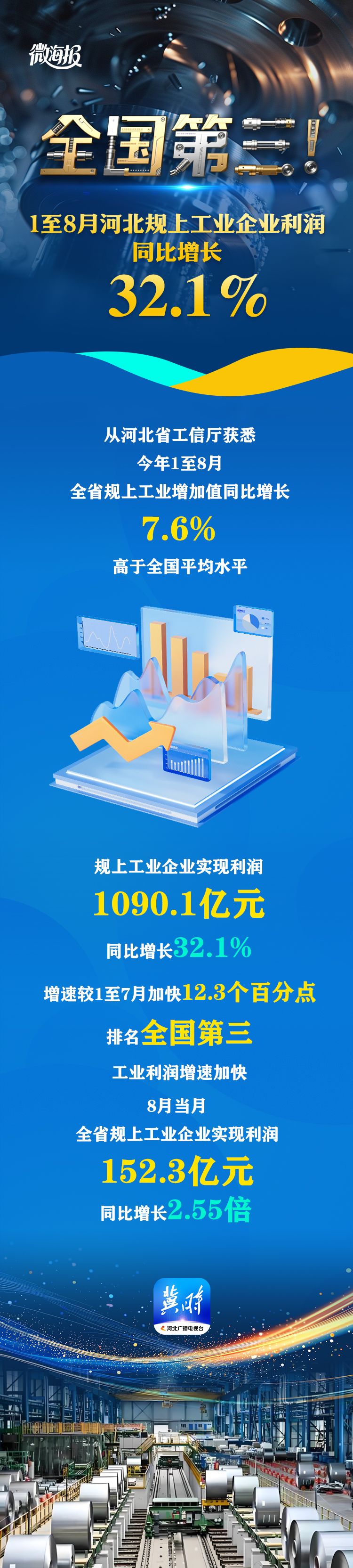 微海報丨全國第三!1至8月河北規(guī)上工業(yè)企業(yè)利潤同比增長32.1%
