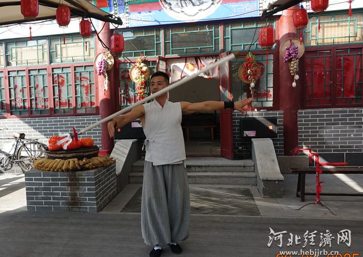 隨著一陣清脆馬蹄劃破長空,“九月廟會”的盛景在吳橋雜技大世界重現(xiàn)。立式擊鼓震天響,霓裳羽衣舞翩躚,高桿不倒翁搖曳生姿,中幡凌空飛旋……“九月廟會”讓街頭雜技回歸市井,重現(xiàn)吳橋雜技藝人撂地攤、闖江湖的市井生活,還創(chuàng)排了眾多新節(jié)目,給游客帶來豐富的游園體驗。江湖酒肆的“店小二”演著雜耍為游客端茶送水,游人圍坐方桌,笑聲與喝彩聲響成一片。