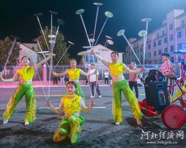 夜場大巡游隊伍中雜技演員表演轉(zhuǎn)碟。河北經(jīng)濟日報記者 吳新光 攝