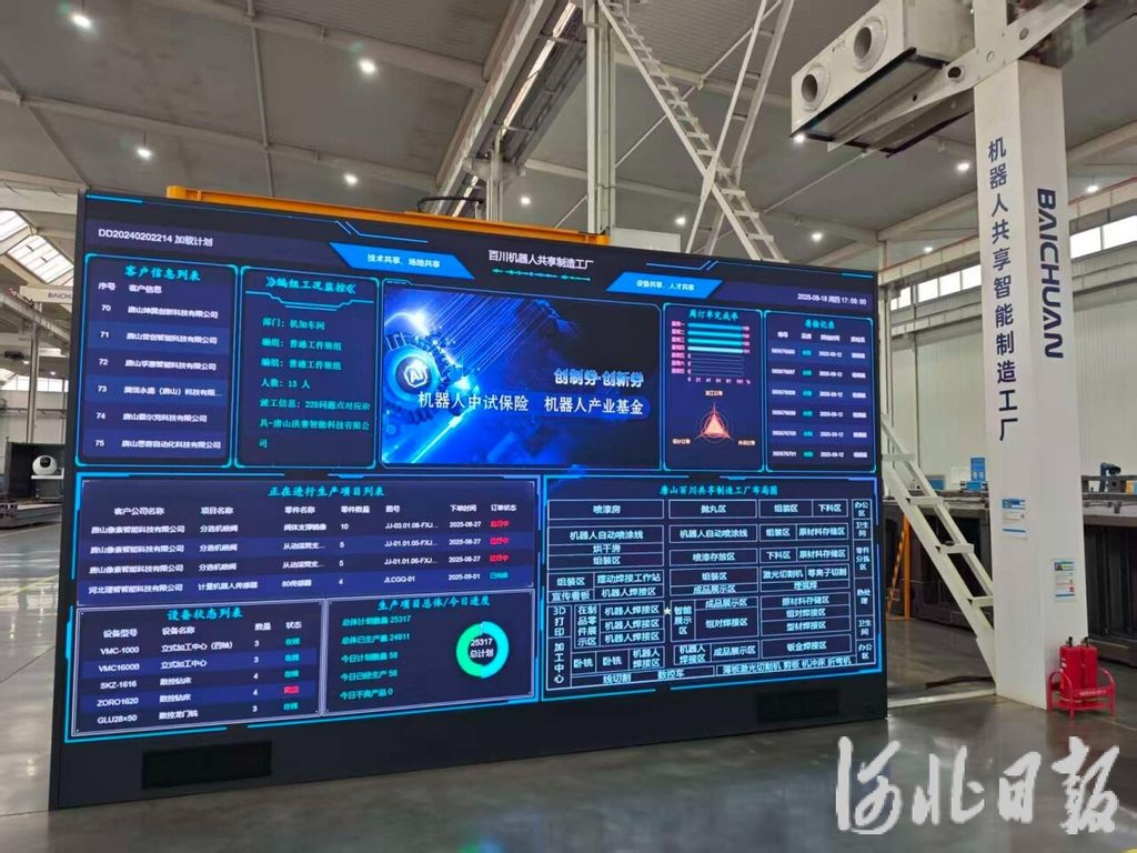 10月10日,唐山百川機(jī)器人共享制造工廠的顯示大屏上,各類生產(chǎn)信息一覽無(wú)余。河北日?qǐng)?bào)記者 王思達(dá) 攝