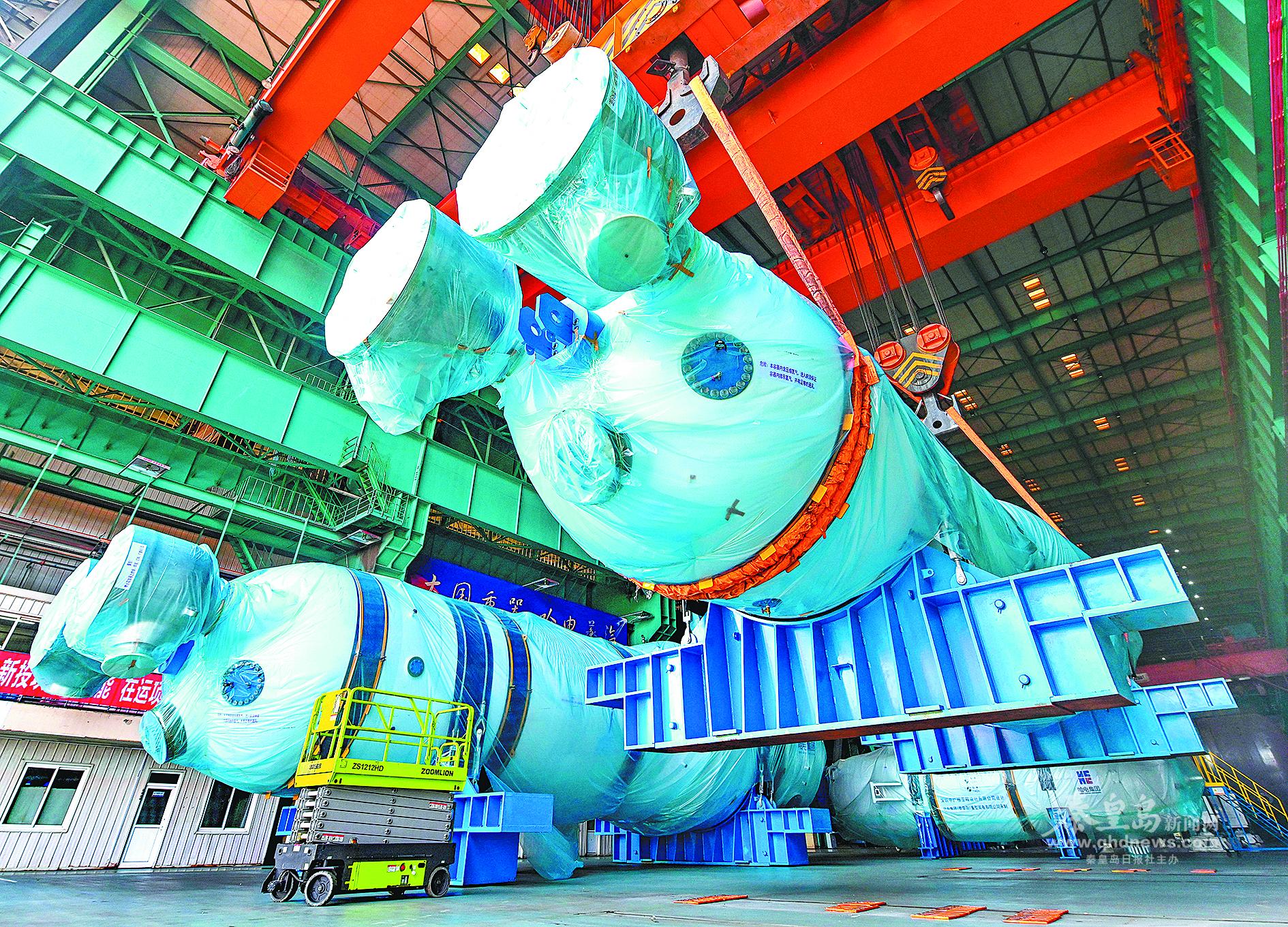 哈電集團(tuán)(秦皇島)重型裝備有限公司生產(chǎn)的三代核電CAP1000蒸汽發(fā)生器標(biāo)志著我國已完全具備三代核電CAP系列蒸汽發(fā)生器批量化制造能力。記者 李鐸 攝