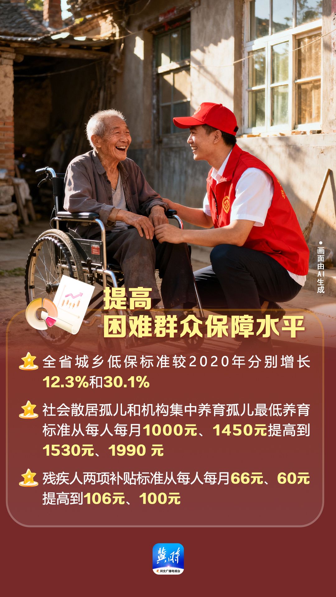 AI 海報(bào) · 數(shù)說“十四五”河北答卷丨“錢袋子”向民生傾斜!社會(huì)“保障網(wǎng)”織密織牢