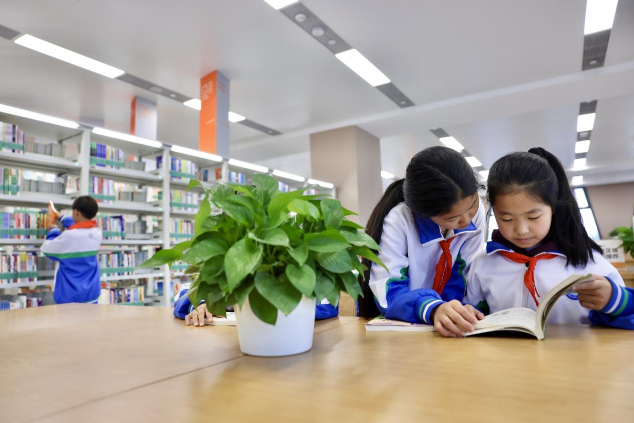 雄安新區(qū)北沙小學學生在雄安圖書館內(nèi)閱讀。人民日報記者 蔣雨師 攝