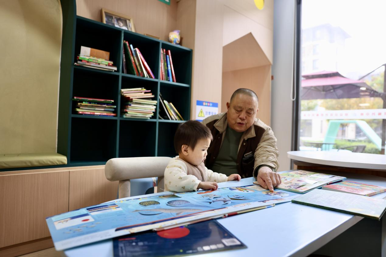 當?shù)鼐用瘛耙焕弦恍 痹谛郯残聟^(qū)易安社區(qū)黨群服務(wù)中心兒童專區(qū)閱讀繪本。人民日報記者 蔣雨師 攝