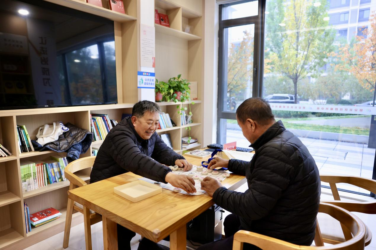當?shù)鼐用裨谛郯残聟^(qū)易安社區(qū)黨群服務(wù)中心下象棋。人民日報記者 蔣雨師 攝
