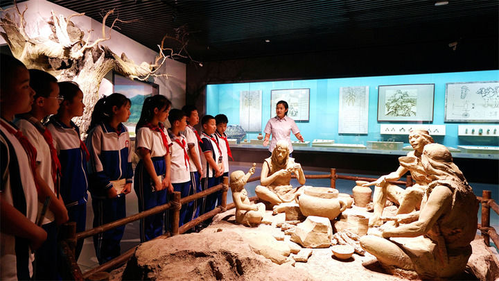 2023年5月17日,在河北省灤平縣山戎博物館,學(xué)生們在講解員的帶領(lǐng)下參觀學(xué)習(xí)。新華社發(fā)(梁志青攝)