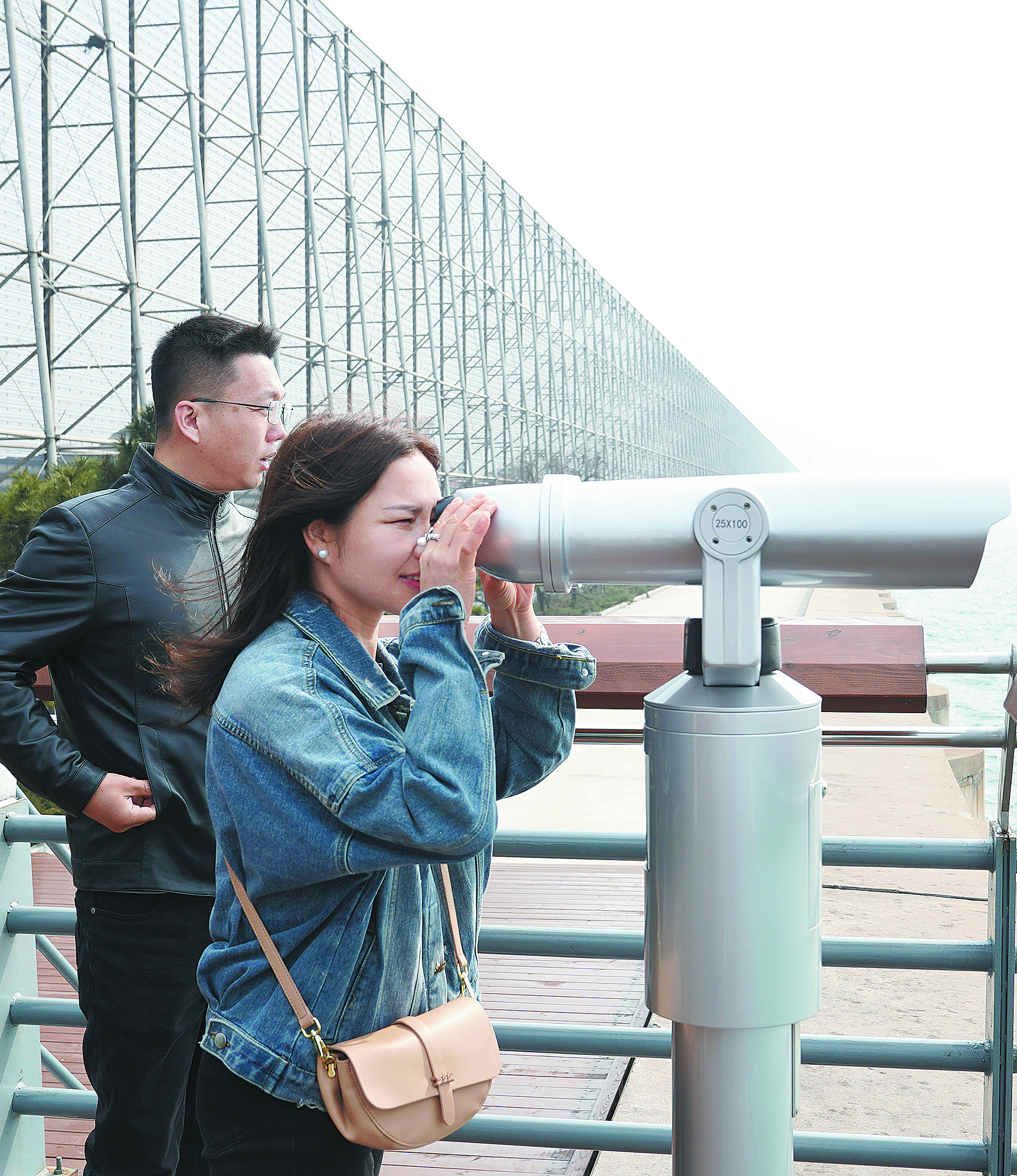 市民站在海上觀景平臺憑欄遠(yuǎn)眺。