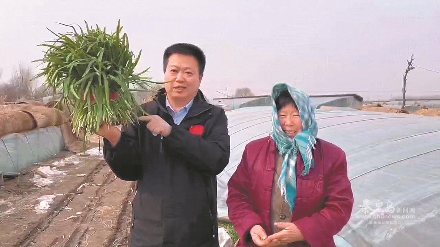 工作隊(duì)通過(guò)網(wǎng)絡(luò)平臺(tái)幫助村民推銷(xiāo)大棚韭菜。(圖片由市委宣傳部駐昌黎縣馬鐵莊村下沉工作隊(duì)提供)