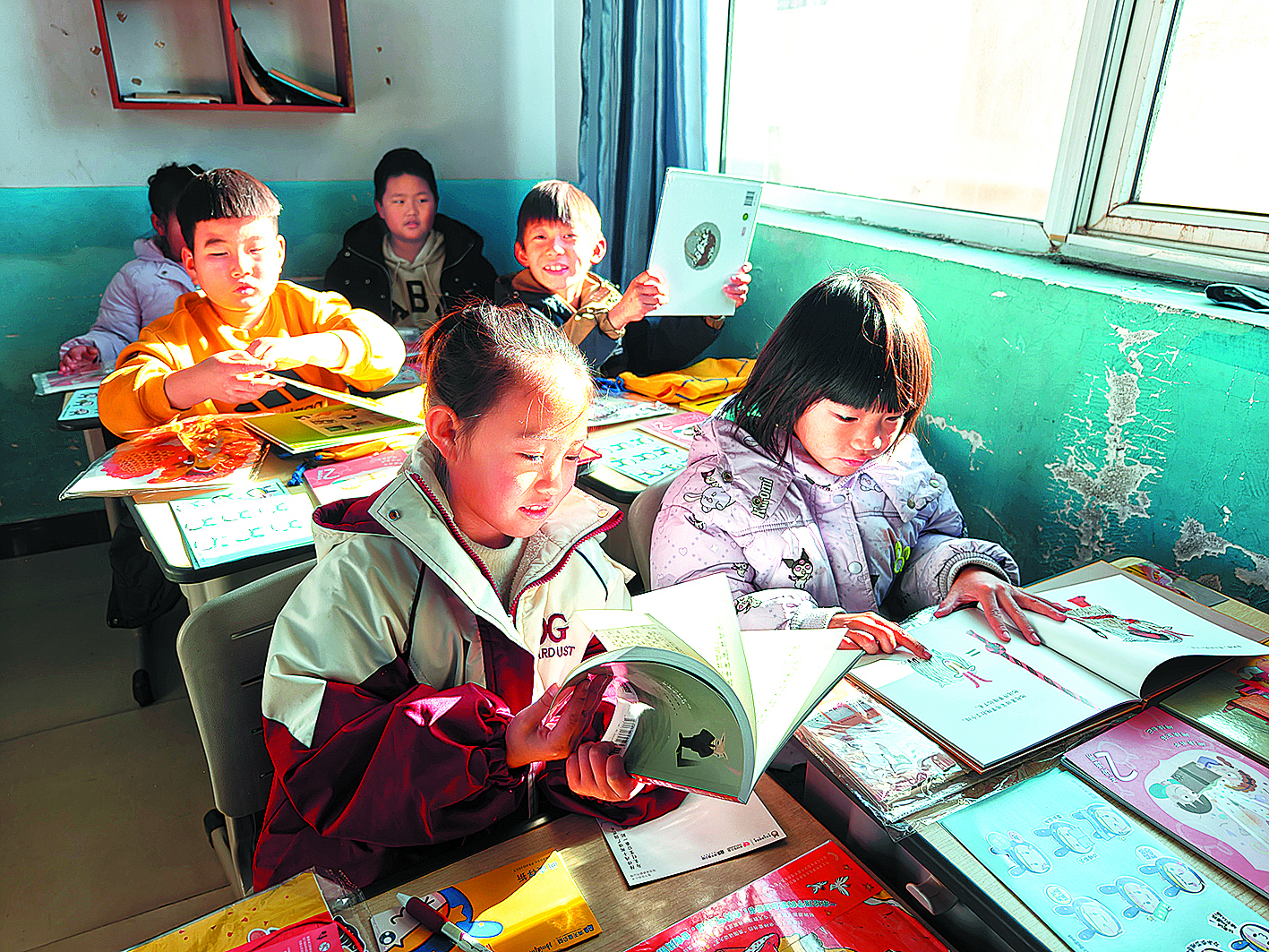 馬圈子小學的學生們在閱讀星囊中的圖書。 通訊員 張靜 攝