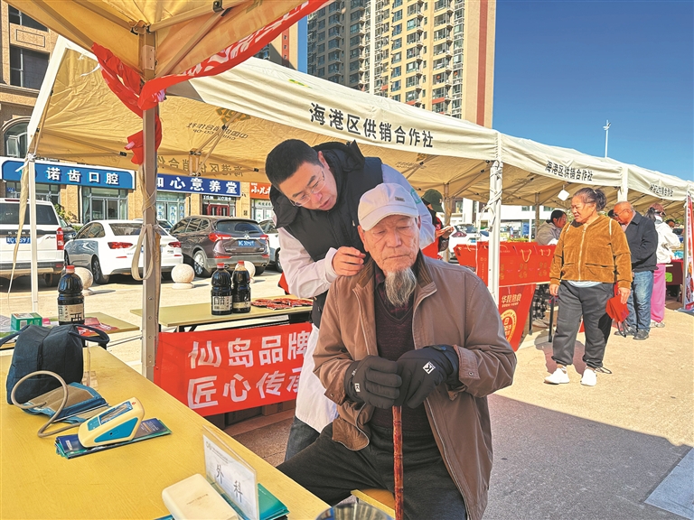 “孝心滿溢”敬老大集上,燕山大街街道提供測量血壓、血糖檢測、口腔檢查等服務(wù)。
