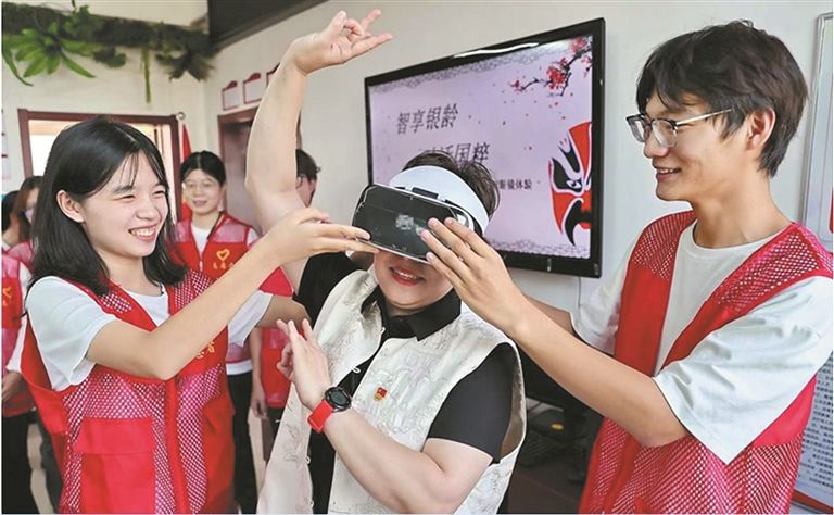 大學(xué)生黨員帶領(lǐng)鐵路里社區(qū)居民體驗(yàn)京劇VR(資料圖片)。