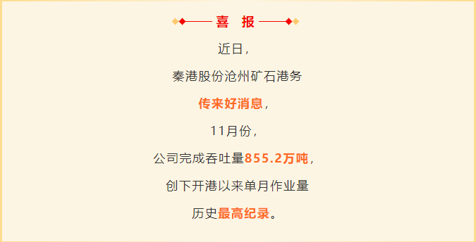 喜報(bào)!秦港股份滄州礦石港務(wù)再度刷新單月吞吐量紀(jì)錄