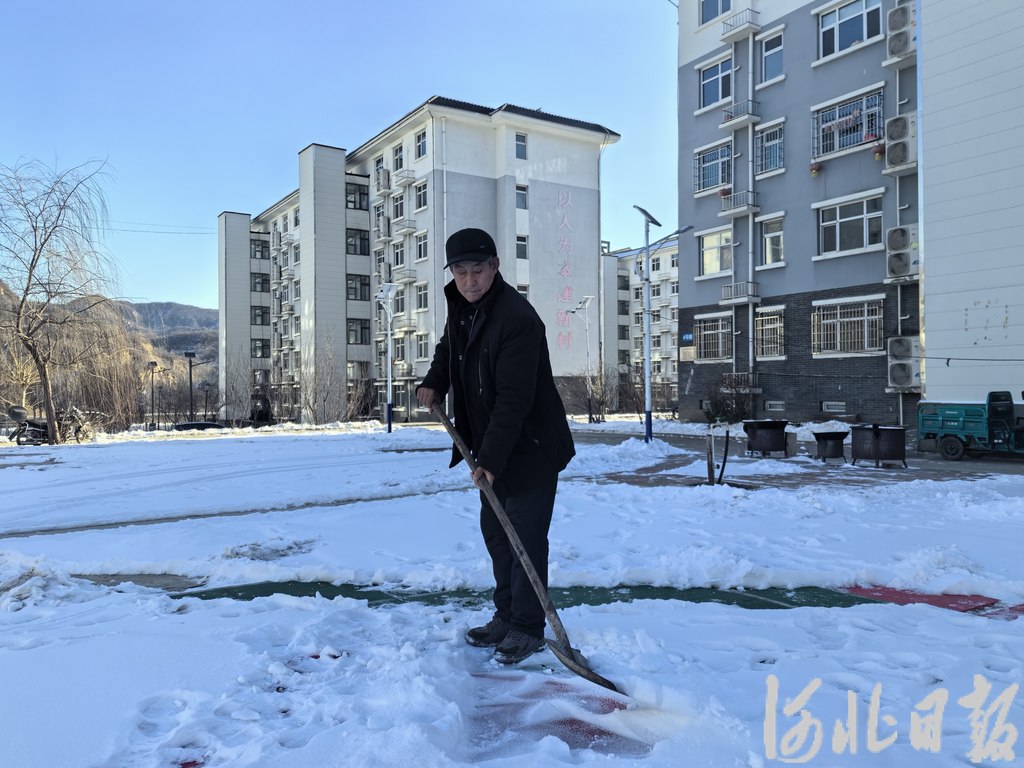 12月13日,石家莊市靈壽縣南營(yíng)鄉(xiāng)團(tuán)泊口易地扶貧安置區(qū),作為村里的保潔員,村民張老三在小區(qū)內(nèi)鏟雪。河北日?qǐng)?bào)記者張曉超攝