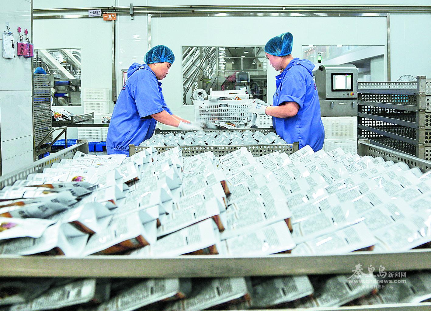 秦皇島百峰食品有限公司職工在生產(chǎn)線上作業(yè)。秦皇島日報(bào)記者 李鐸 見習(xí)記者 劉劍 攝