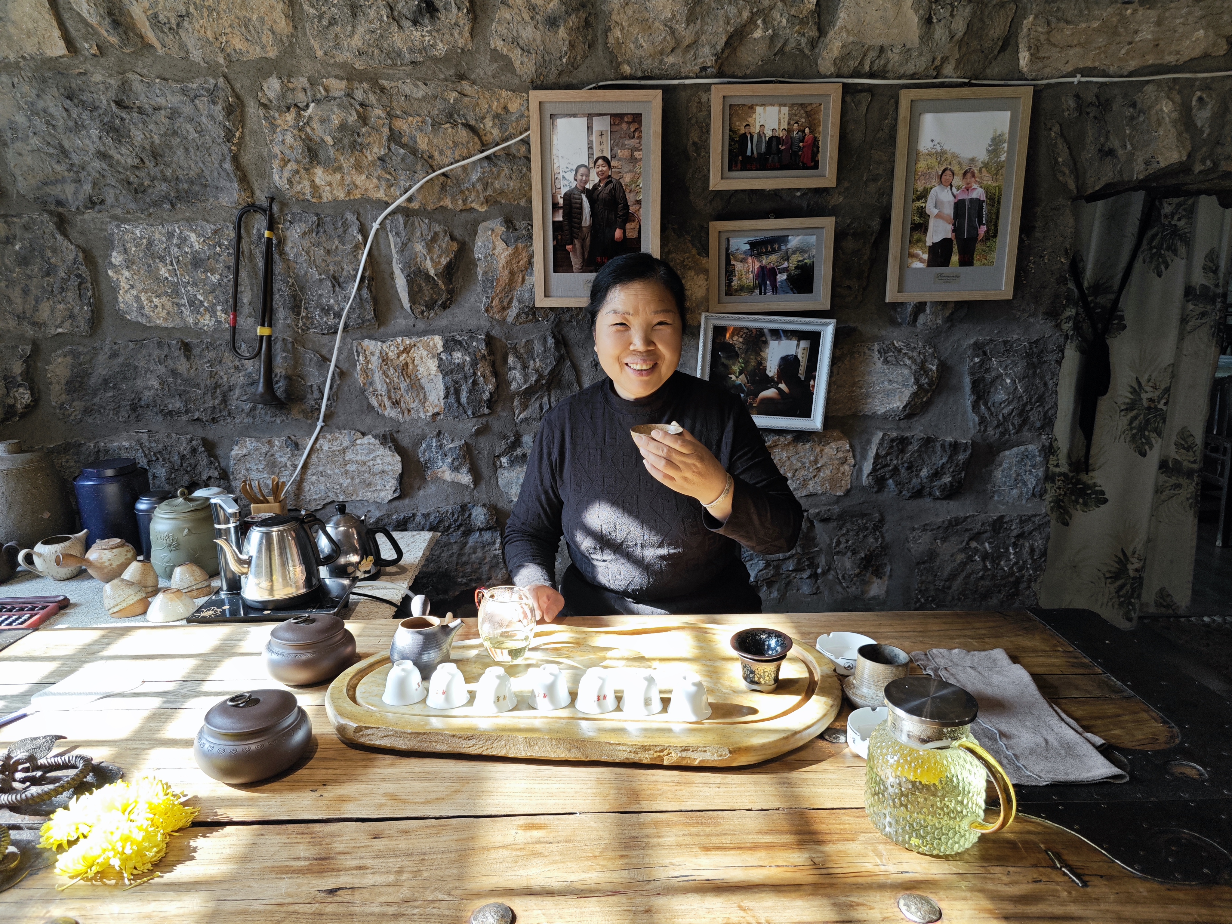茶館老板朱麗在修繕好的西窯洞內(nèi)。邊義婷攝