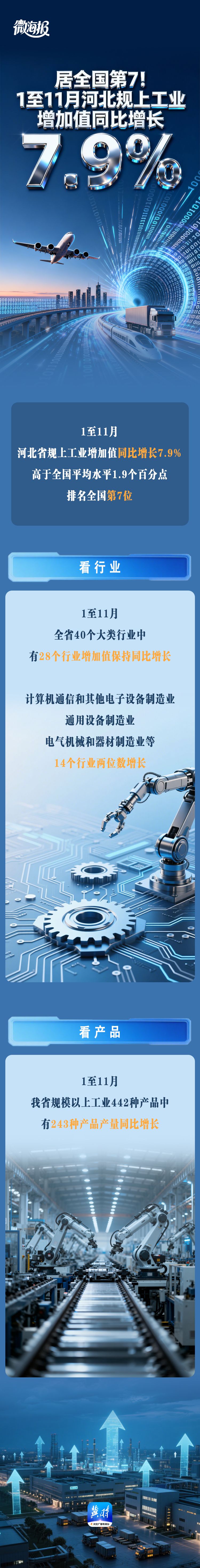 微海報丨居全國第7!1至11月河北規(guī)上工業(yè)增加值同比增長7.9%